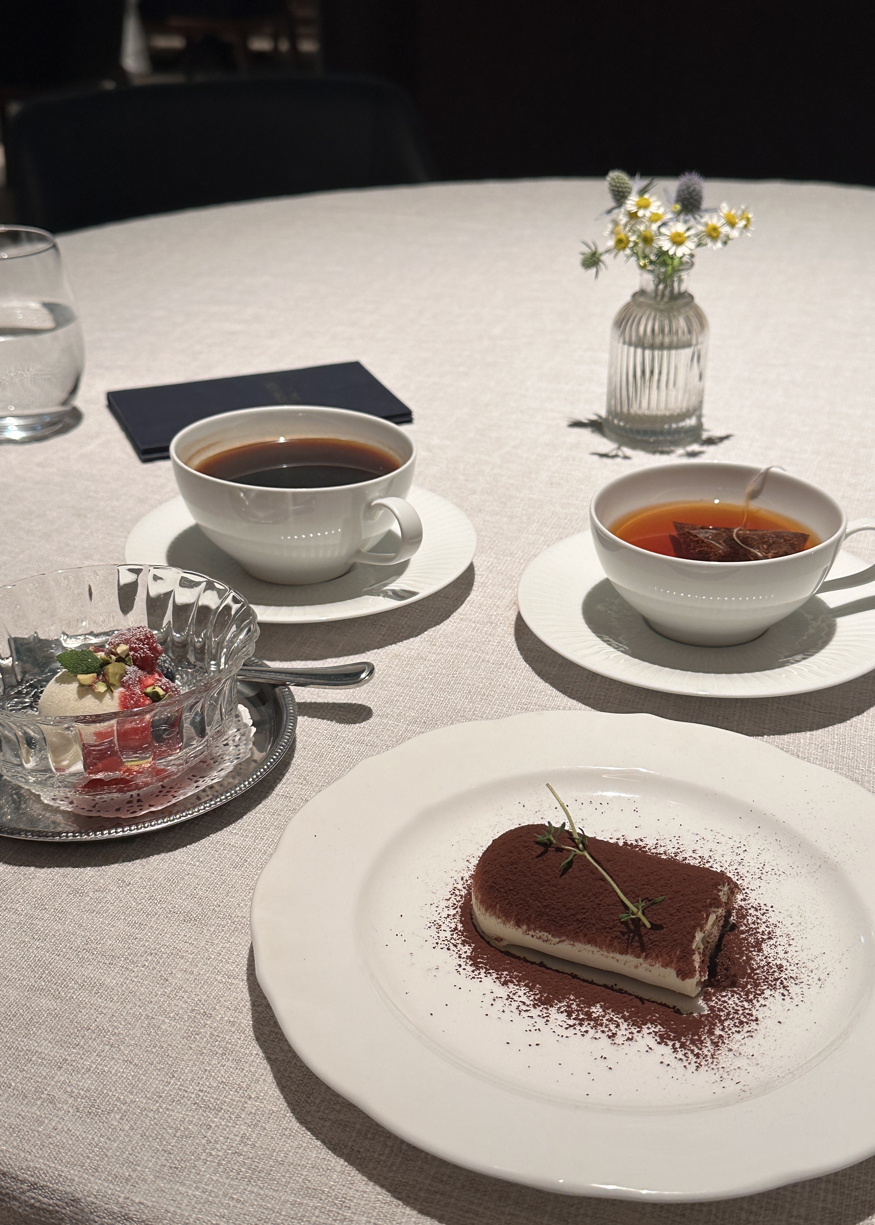디저트는 커피와 티, 그리고 아이스크림과 티라미슈를 선택했습니다. 베리류가 들어가있는 바닐라 아이스크림은 알갱이와 같이 먹으면 상큼했고, 티라미슈도 무난무난 맛있었습니다.