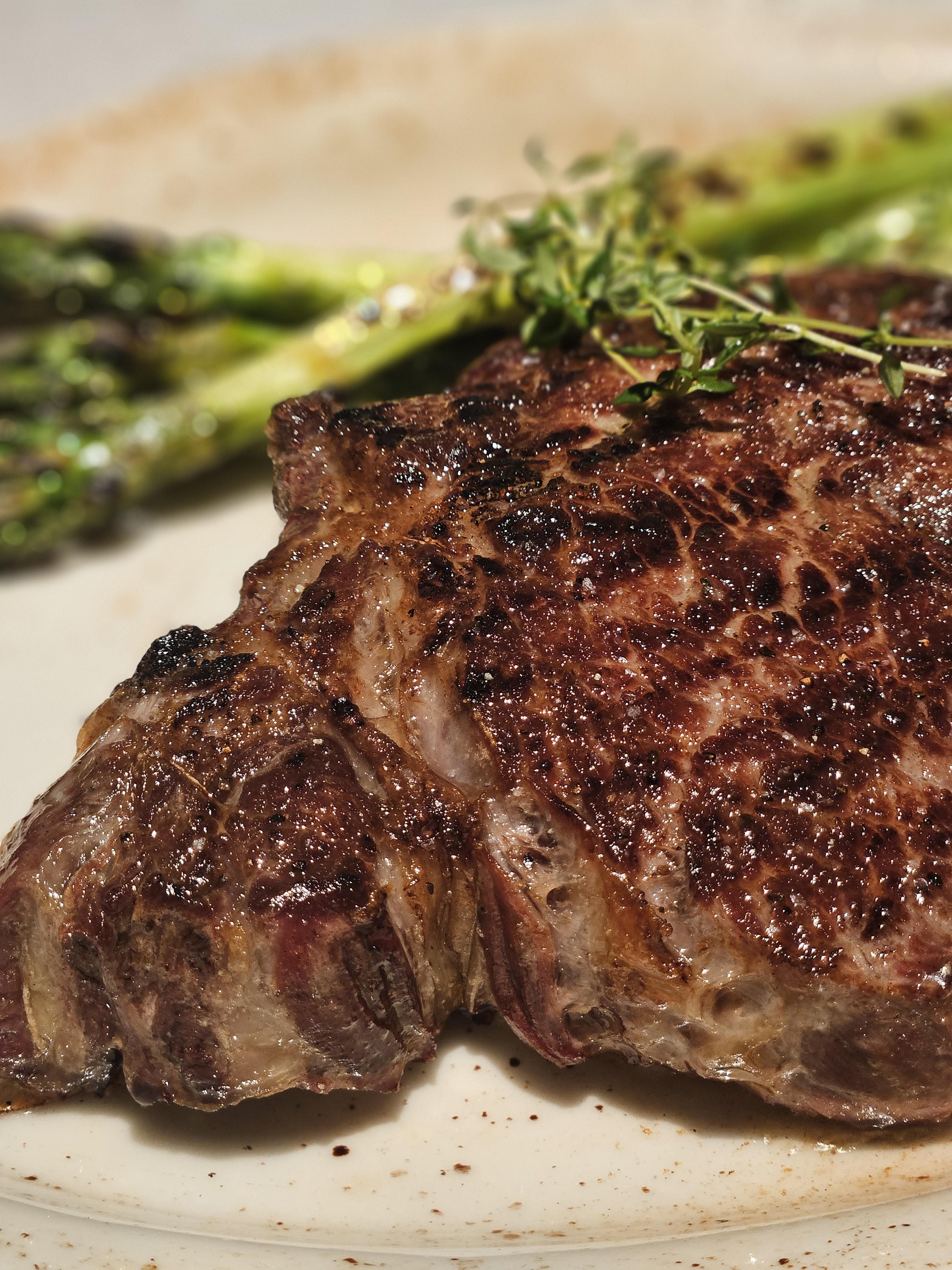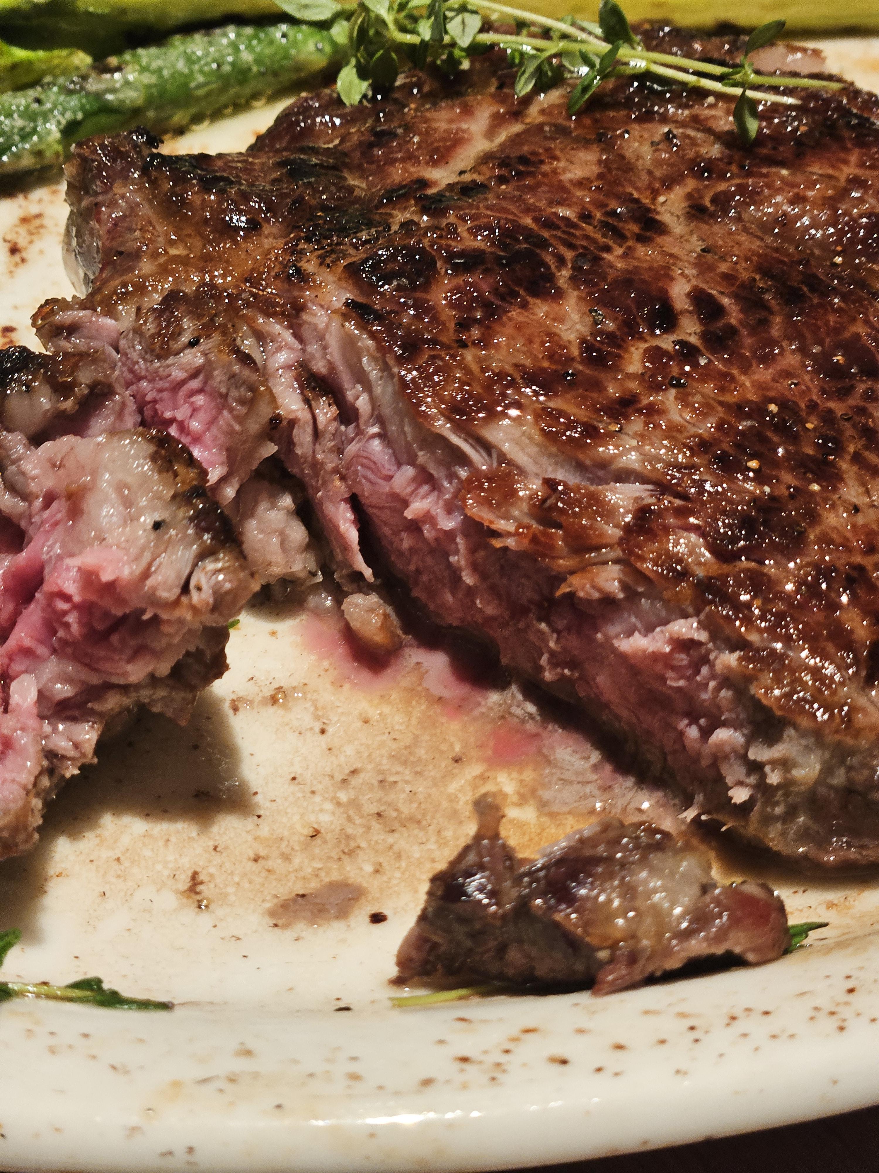 티본스테이크는 맛있었습니다. 티본스테이크 답게 지글지글 뜨거운 접시에 큼직하게 스테이크가 담겨서 나왔구요. 저희는 미디움으로 주문을 했었고 미디움 굽기는 사진의 정도 였습니다. 갓 구운 스테이크를 뜨끈뜨끈한 접시에 담아서 나오니 일단 비주얼과 소리부터 맛있습니다ㅎㅎ 가니쉬로 나오는 아스파라거스가 두툼해서 썰어 먹으면 육즙(?)이 가득 나오는데 아주 맛있었습니다. 감자퓨레도 같이 나오는데 약간 꾸덕한 질감이였습니다. 전체적으로 훌륭한 스테이크였고, 안심이나 다른 스테이크는 먹어보지 못해서 입안에 사르르 녹는 스테이크류는 어떤 맛인지 모르겠지만 티본스테이크는 적당히 씹히는 감이 있는 정도였네요.