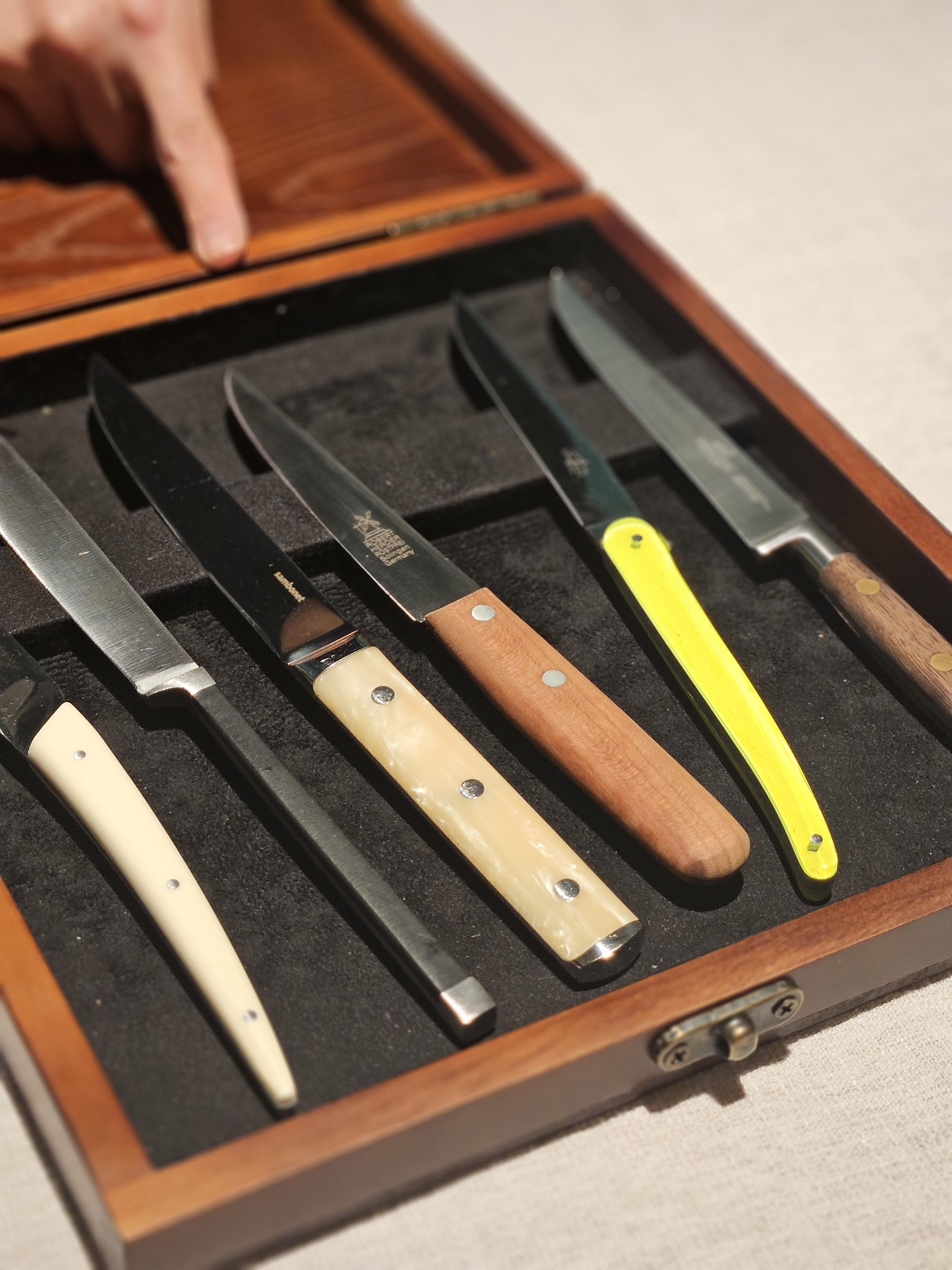 재미있게도 스테이크용 칼을 선택할 수 있게끔 보여줍니다. 대부분 유럽산 (프랑스, 독일, 영국?) 칼들이였는데, 뭐 대충 좋은 칼이라는 설명을 덧붙여줍니다. 저는 주방용품에 관심이 없어서 들어도 잘 모르겠더라구요. 그래도 무기(?)하면 독일제 아닌가라는 생각에 독일제 칼을 선택했습니다. 🤣