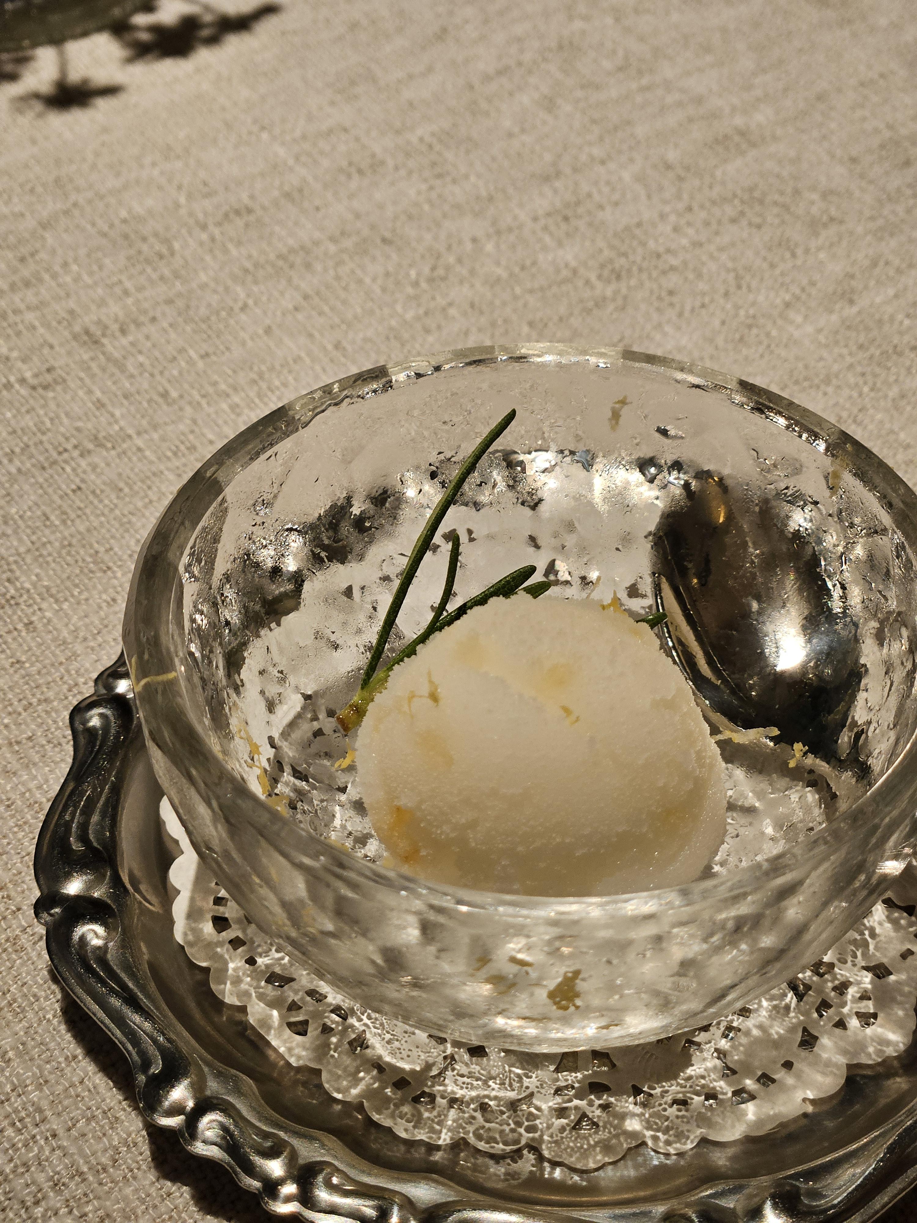 스테이크 전 입가심용으로 샤벳이 나왔는데요. 유자 알갱이가 들어간 유자샤벳은 그 목적에 맞게 상큼했습니다. 아이스크림만 따로 팔았으면 좋겠더라구요ㅎㅎ
