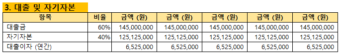 - 대출이자 (연간): → 대출금 x 대출이자율