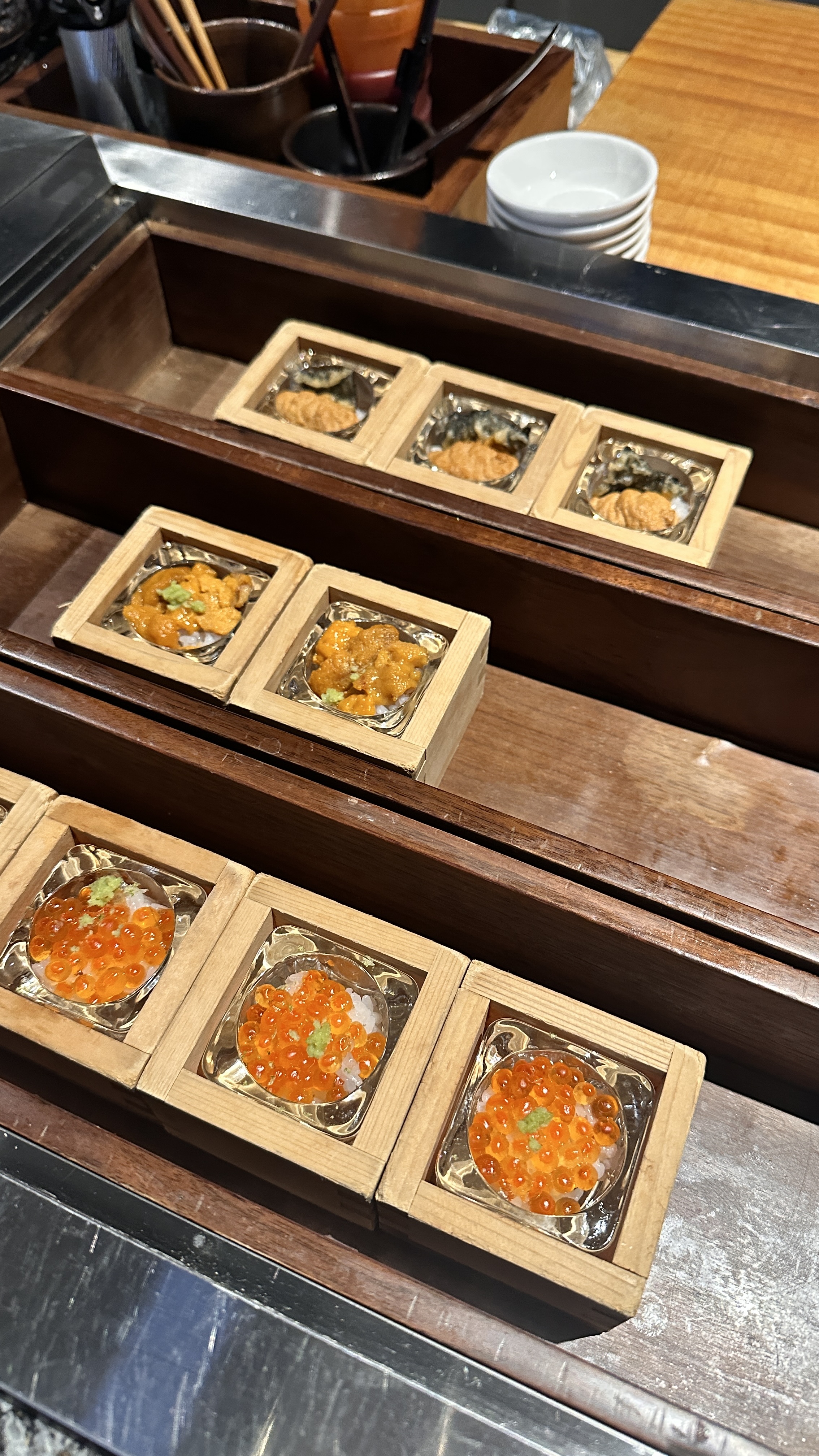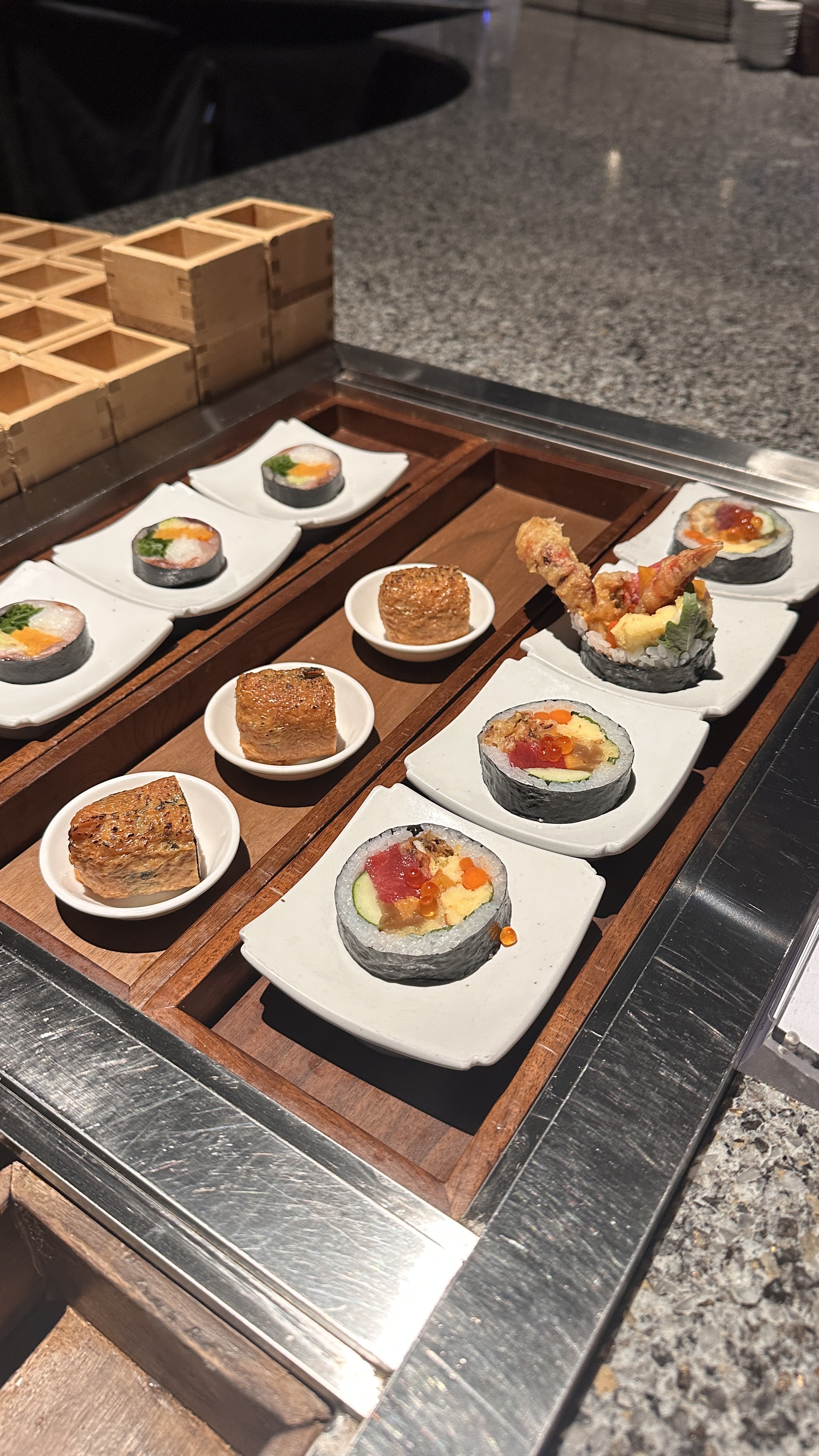 메인 테이블석의 반대편에는 일식과 중식, 그리고 음료 코너가 준비되어 있습니다. 일식은 회, 스시류, 마끼, 스끼야끼, 튀김을 주문할 수 있습니다.