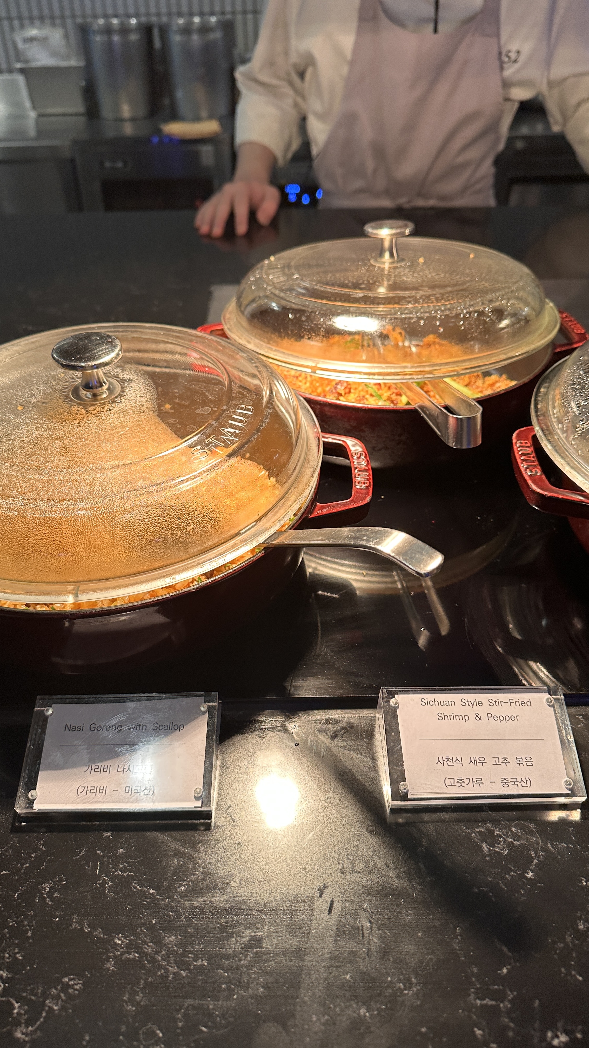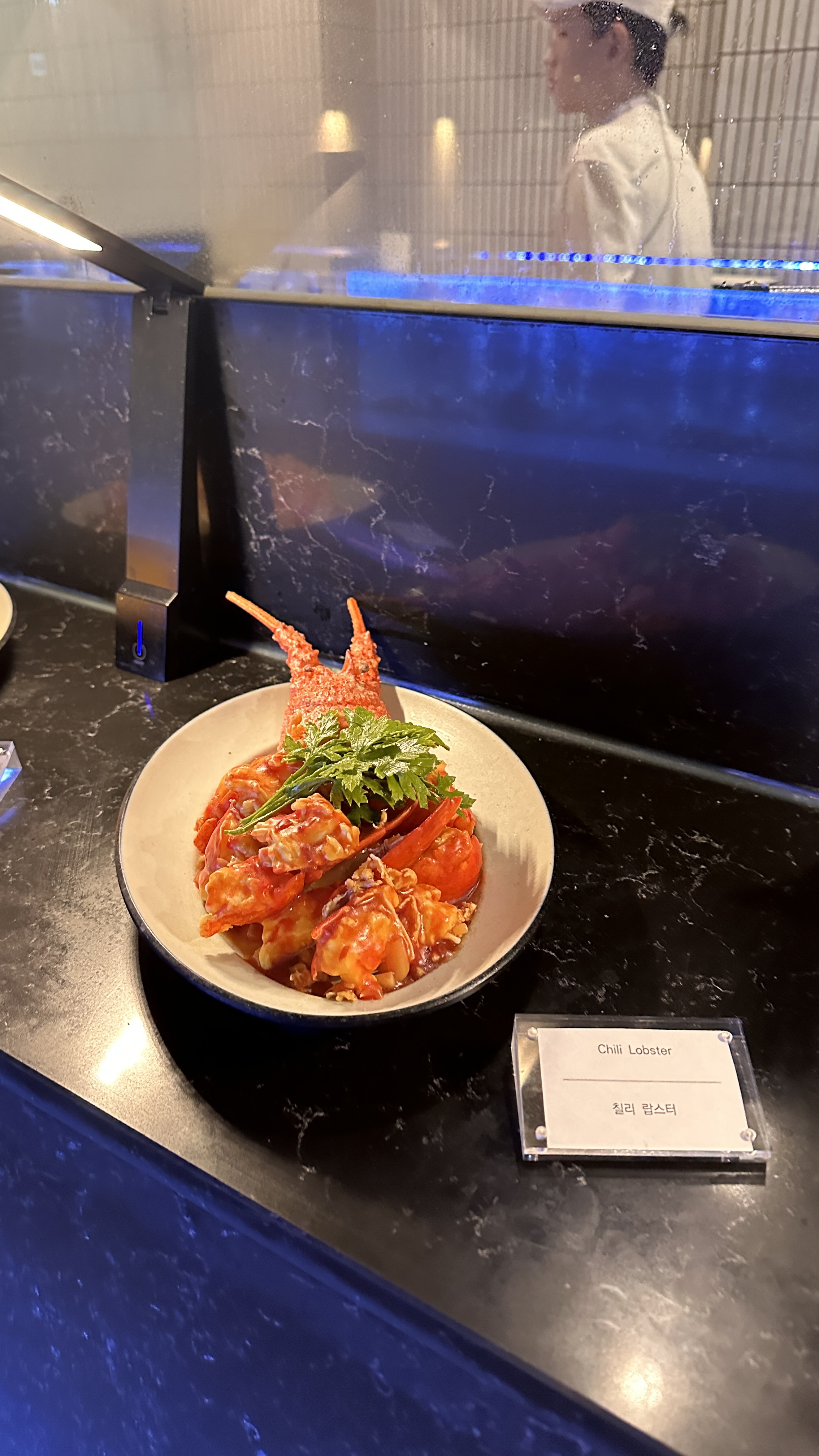 웰컴 디쉬는 해산물 찜요리와 소고기 구이 요리를 선택하면 됩니다. 이름은 웰컴 디쉬지만 그냥 먹고 싶을 때 가서 테이블 번호를 말하면 요리해서 가져다 줍니다. 대게와 랍스터 찜은 대게 찜과 랍스터 찜 맛이구요.. 저는 진짜 해산물 찜요리는 아무 생각 없이 먹어서 잘 모르겠네요.😂 저희 10살짜리 조카는 맛있다고 정신 없이 대게를 먹었습니다.