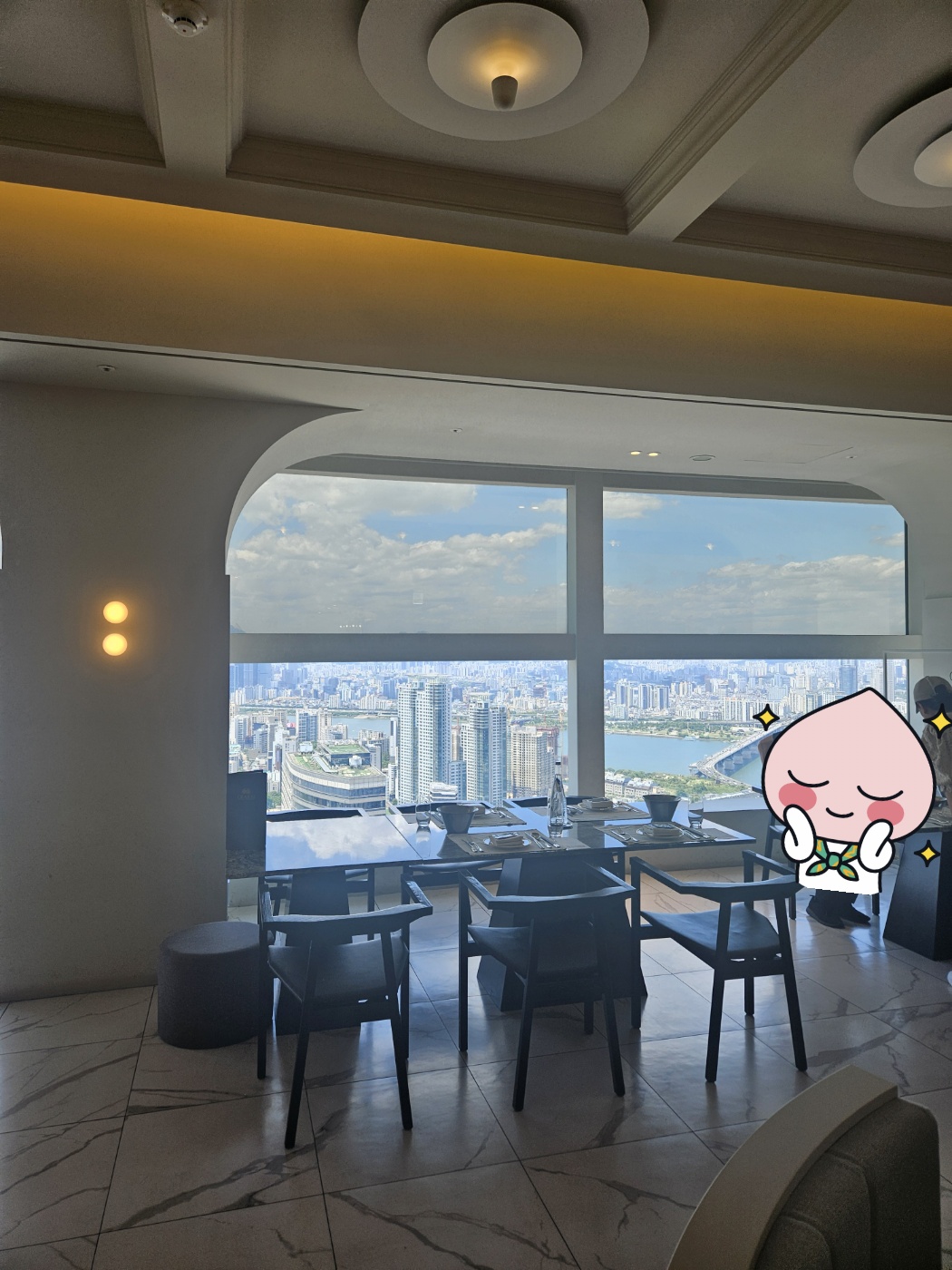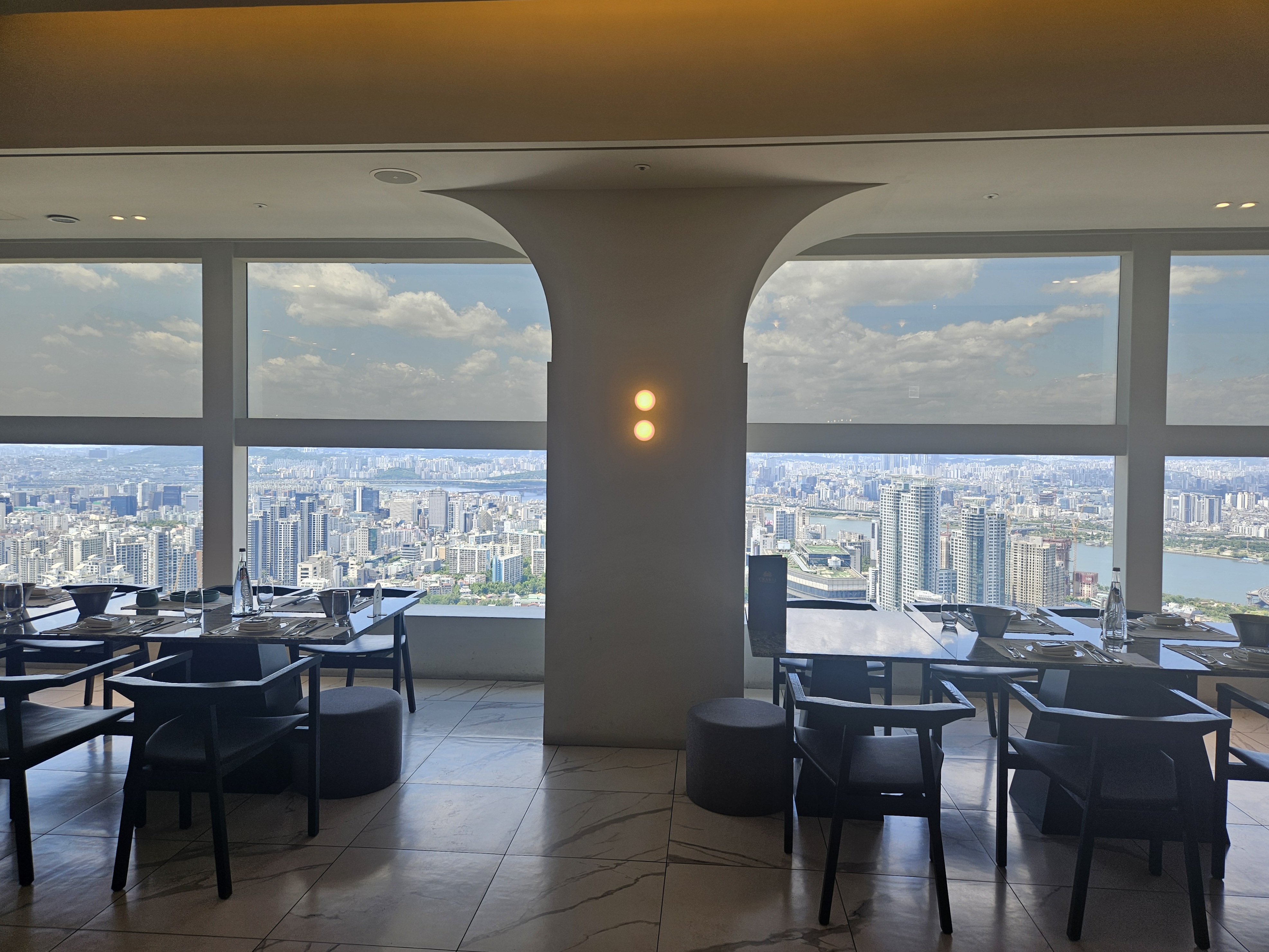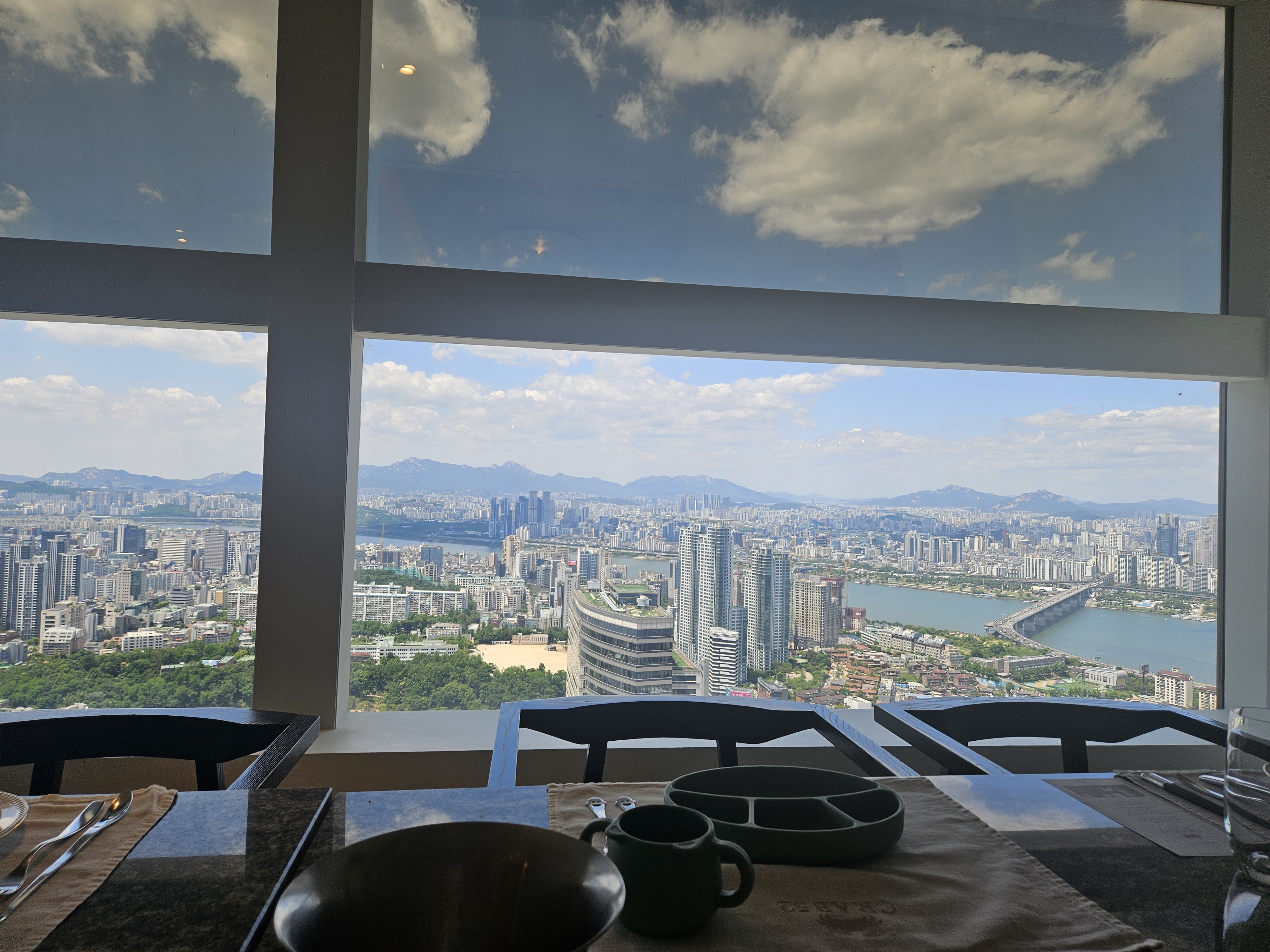 밥집을 다녀왔는데, 그것도 뷔페를 다녀왔는데 제일 먼저 얘기하고 싶은 얘기는 뷰입니다ㅎㅎ 방문한 날에 날씨가 너무 좋아서 뷰가 더더욱 환상적이더라구요. 부동산 일을 겸하고 있는 제 입장에서 서울을 내려다보는 시원한 뷰를 바라다 보는 일은 정말 신나는 일이였습니다. 음식 얘기는 잠시 접어두고 뷰 사진과 영상을 올려 보겠습니다.
