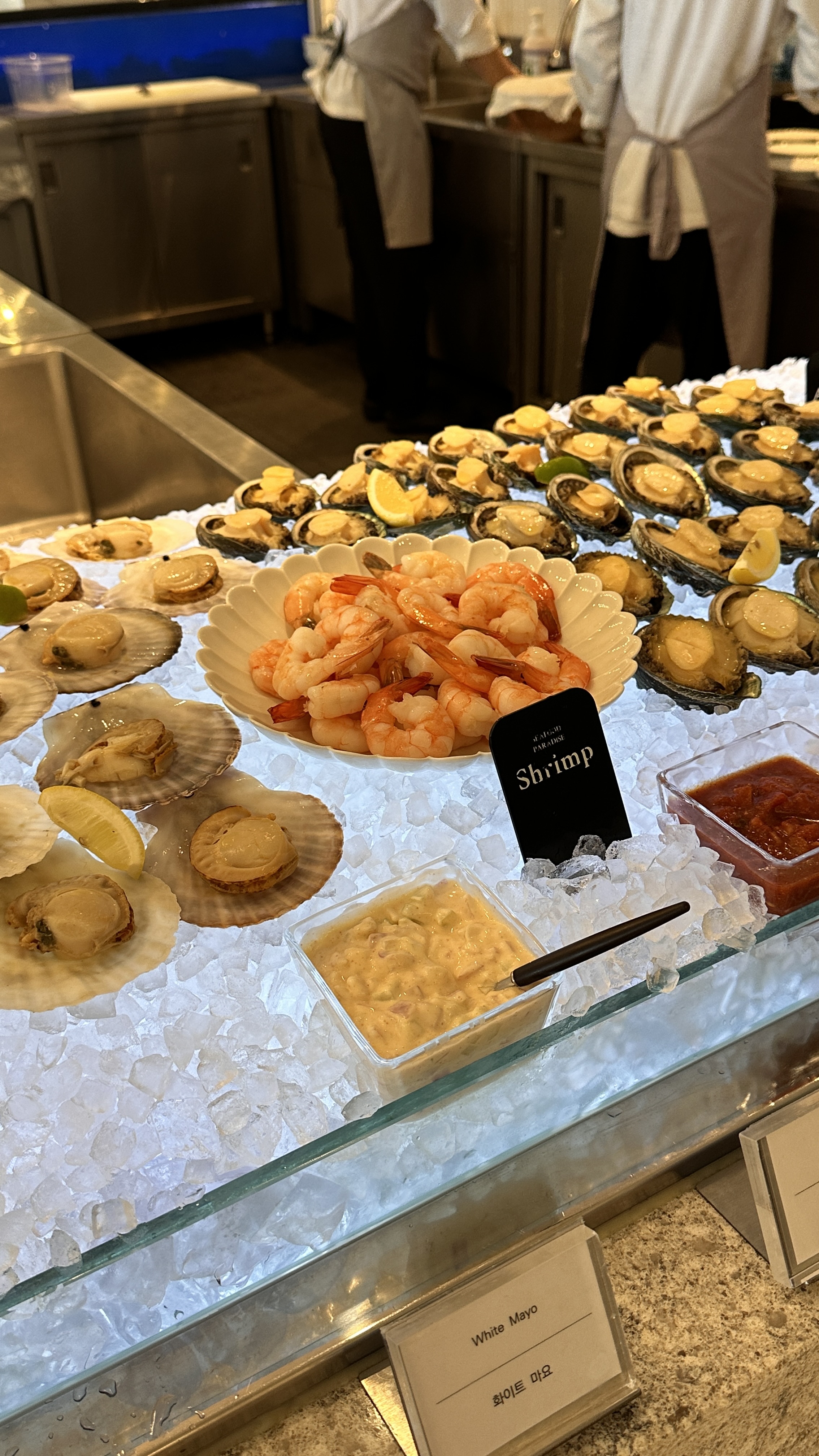 저저는 개인적으로 해산물을 아주 좋아하는 편이 아니기 때문에 이런 해산물 뷔페에 나열되어 있는 해산물 요리에 큰 감동을 느끼지 않는다는 점을 고려해주시길 바랍니다. 😂