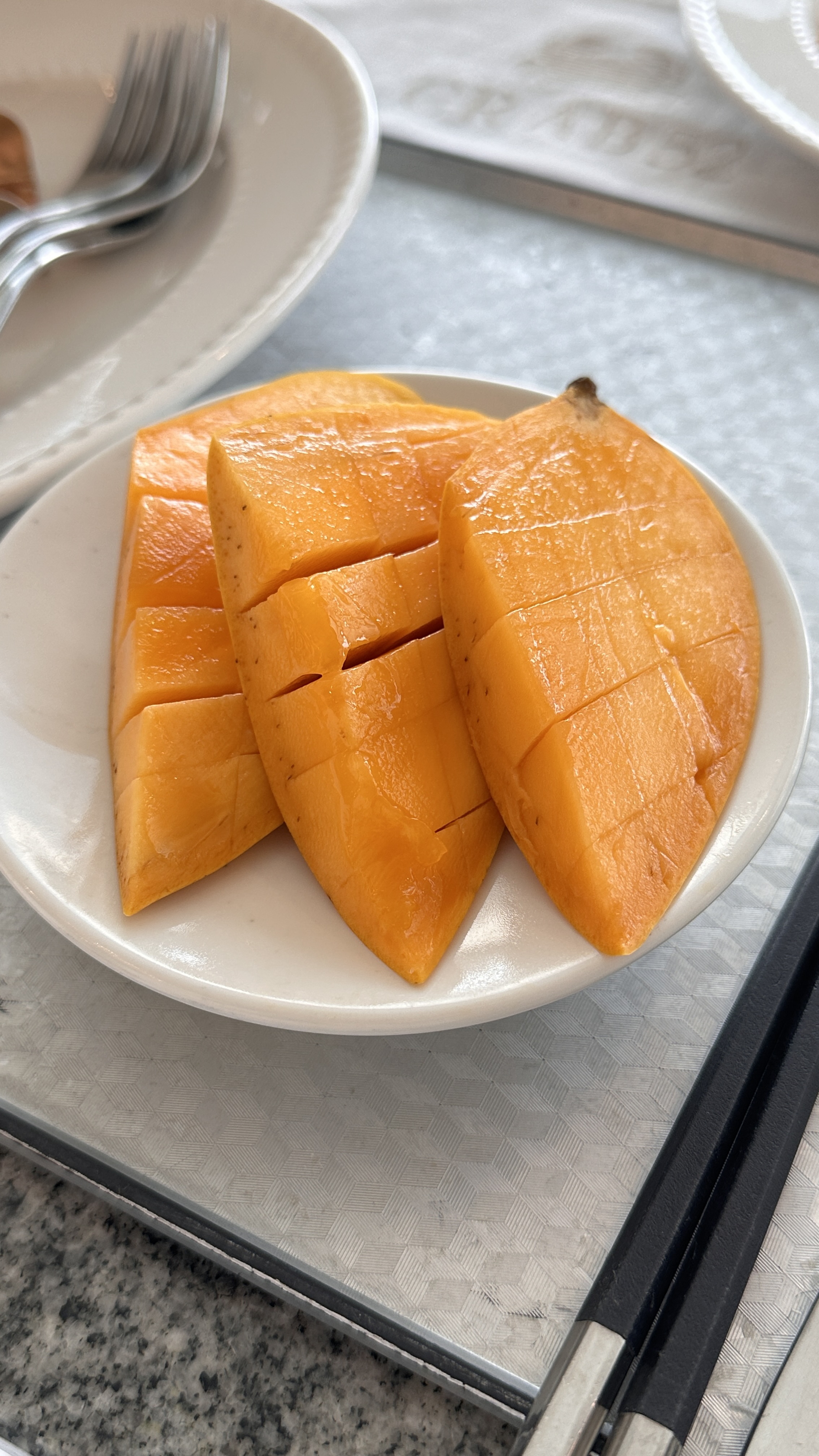 과일은 깎아서 접시에 담아줍니다. 망고 좋아해서 망고를 몇 개 먹었는데 맛이 나쁘진 않았습니다. 사실 이때쯤에는 무슨 맛인지 평가할 배 상태가 아니였습니다. 산해진미를 가져다 줘도 배부르면 그냥 음식이죠... 🤣