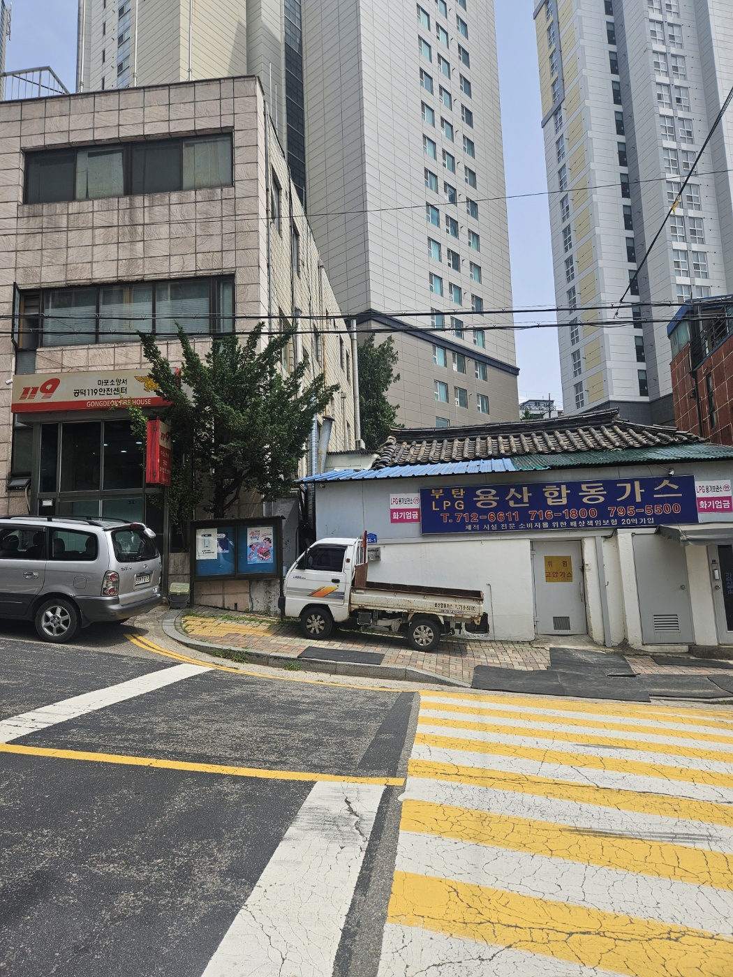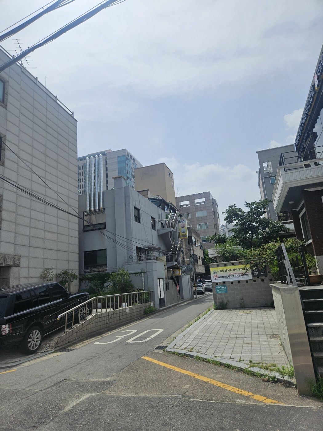 3번 라인은 애오개역 방면 대로로 나가는 방향인데요. 대로변에는 높은 오피스텔들이 자리하고 있습니다. 이 자리는 약간의 언덕이 지형이 있어 이곳을 통해서는 유모차를 끌기가 좀 어려워 보였습니다.