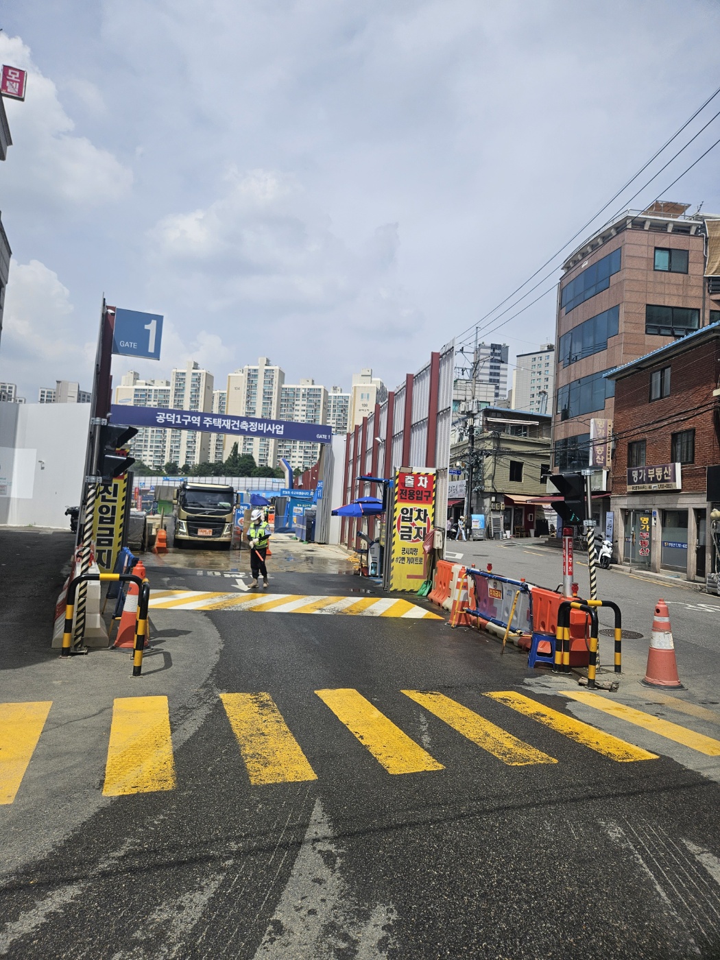 마지막으로 5번 라인은 라첼스의 주출입구로 예상되는 지역입니다. 도로가 상대적으로 넓고, 마을버스도 다니는 모습을 볼 수 있습니다. 작게나마 상가들이 활성화 되어 있는 모습도 볼 수 있습니다. 공사 사진을 보면 확실히 넓은 평지 지역에 펼쳐져 있는 현장을 확인할 수 있습니다.