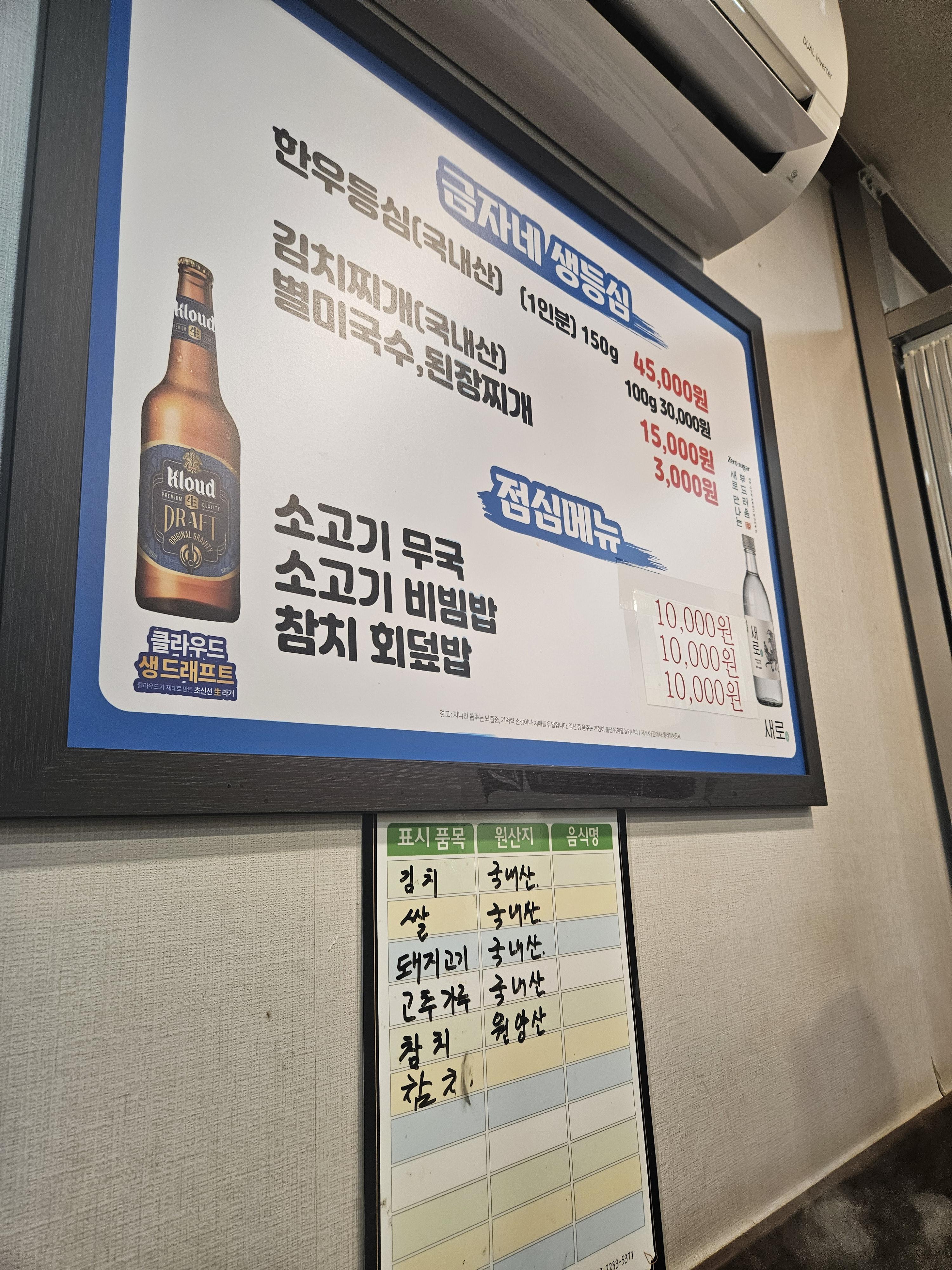 저는 기본적으로 고기를 좋아하지만 그중에서도 소고기를 가장 좋아합니다. 진~짜 맛있는 소고기보다 맛있는 음식은 없다는 게 저의 음식 철학중 하나인데요.🐂🥰 금자네생등심은 메뉴가 아주 심플하게 국내산 소 생등심 하나밖에 없습니다. 메뉴 하나로 승부를 보는 것이 먹어보기도 전에 맛집의 아우라가 슬쩍 느껴집니다.