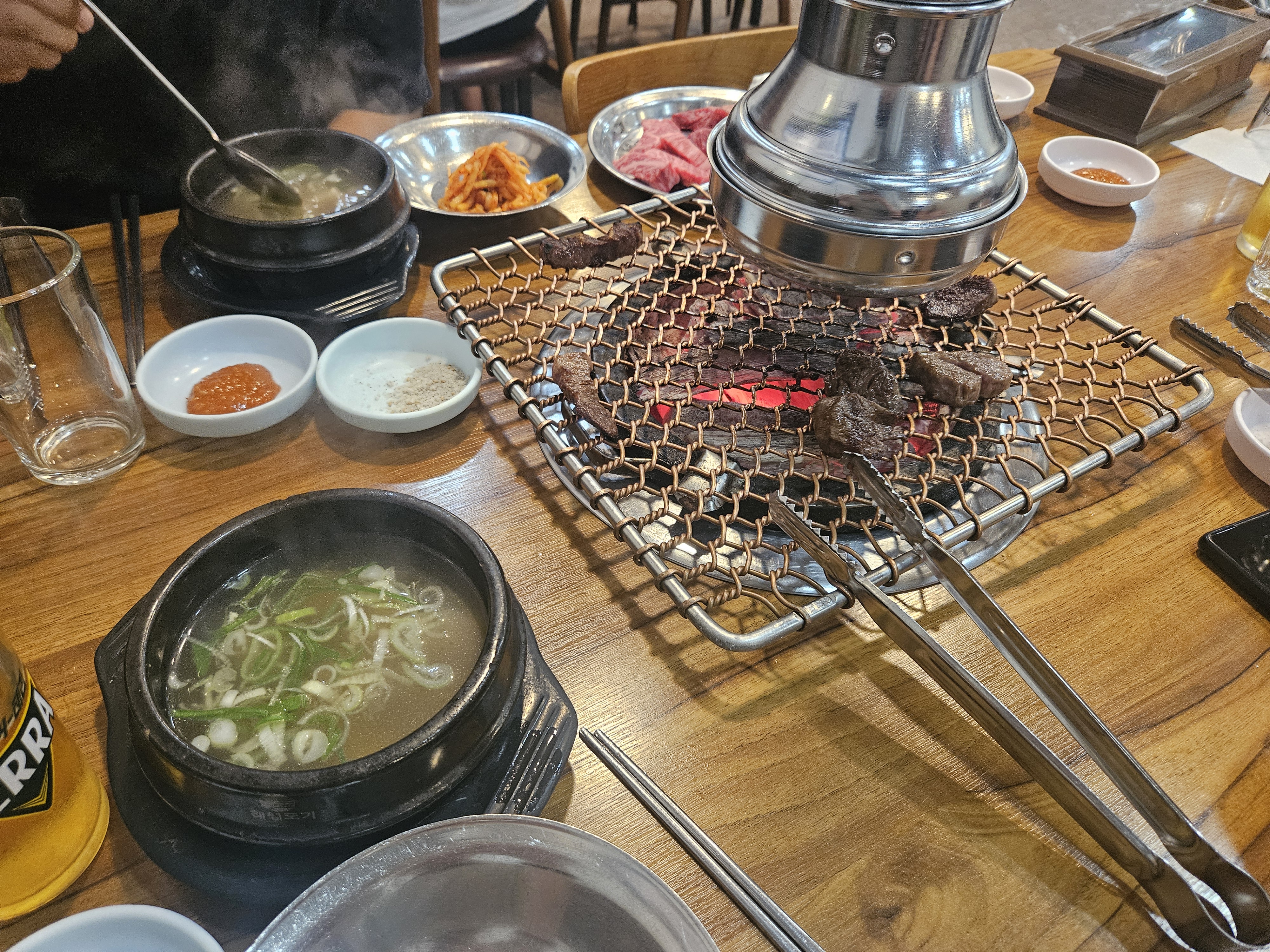 금자네생등심은 메뉴가 한우등심 하나밖에 없습니다. 양념, 돼지 그런거 없습니다. 뭐 시킬지 고민할 필요가 없는 게 회식에 최적화 되어 있는 것 같기도 합니다. 기본으로 나오는 소고기무국이 있어서 김치찌개는 주문하지 않았습니다. 요 소고기무국과 별미국수가 또 상당히 맛있습니다. 😋 아래에서 후기를 쓰겠습니다.