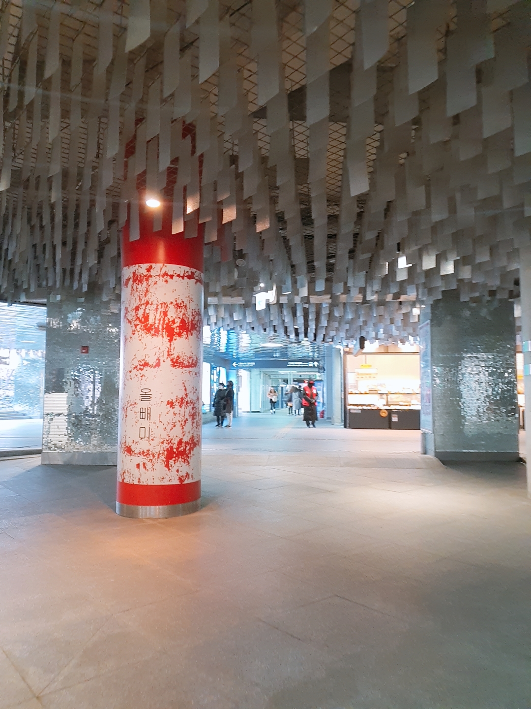 오피스 엘베를 통해 지하1층으로 올라온 후, 왼편으로 가면 신도림역 광장 지하가 나옵니다. 디큐브 방면 지하공간은 매우 깔끔하게 정돈되어 있습니다.