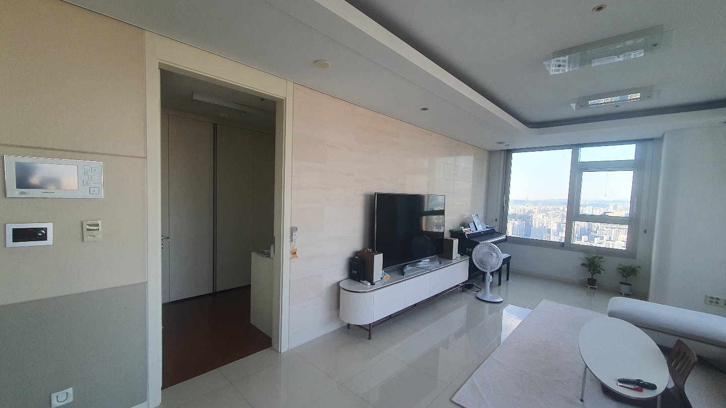 사진을 보시면 거실 TV 벽면에 70인치 티비를 올린 티비장과 디지털피아노를 나란히 놓아도 가로 공간이 꽤 많이 남습니다. 살면서 가장 많은 시간을 보내는 공간이 거실이다 보니, 개인적으로는 거실 넓은 구조가 아주 좋았는데요. 저희(신혼부부)의 경우 거실과 안방, 부엌 정도가 실제로 살면서 생활하는 공간의 대부분을 차지했고, 때문에 이 공간들이 상대적으로 넓게 빠져있는 구조가 더욱 만족스러웠습니다. 다만 아이가 있는 가정이라면 작은 방들의 사이즈가 다소 아쉽게 느껴질 수 있을 것 같네요.